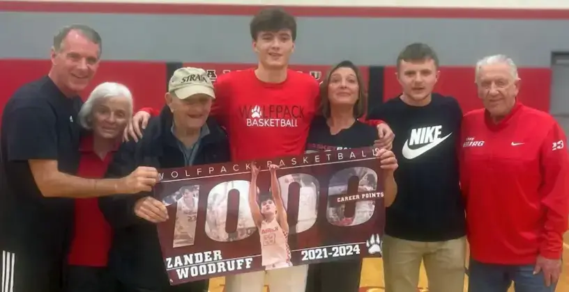 On Wednesday, December 6th at Pewamo-Westphalia, Zander Woodruff scored a career high 39 points and exceeded the 1000 point total. He was honored on his home floor in Laingbsurg on Friday, December 8th. Zander is pictured here with his parents and grandparents. See pages 8-13 and 16 for Winter sports team photos, previews and game and match results.