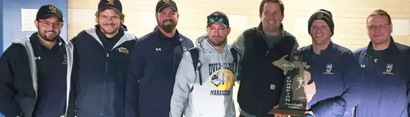 L to R: Austin Lognes (JV asst.), Nick Hafnagel (JV Coach), Damien Miller (Asst. Coach), Chris Winter (AD), Joel Longstieth (Asst. Coach), Travis Long (Head Coach), Jason Bowen (Asst. Coach)