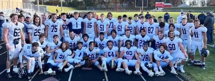 2023 Region all Champs pictured here with the trophy. Next up, semi-finals Saturday, November 18th in Grand Blanc against Almont.