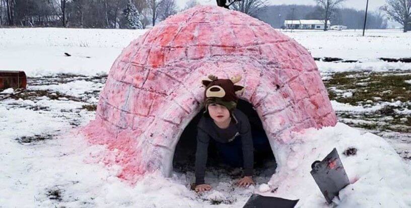 Joel Passmore and his son Dugan of Elsie built this igloo over Christmas